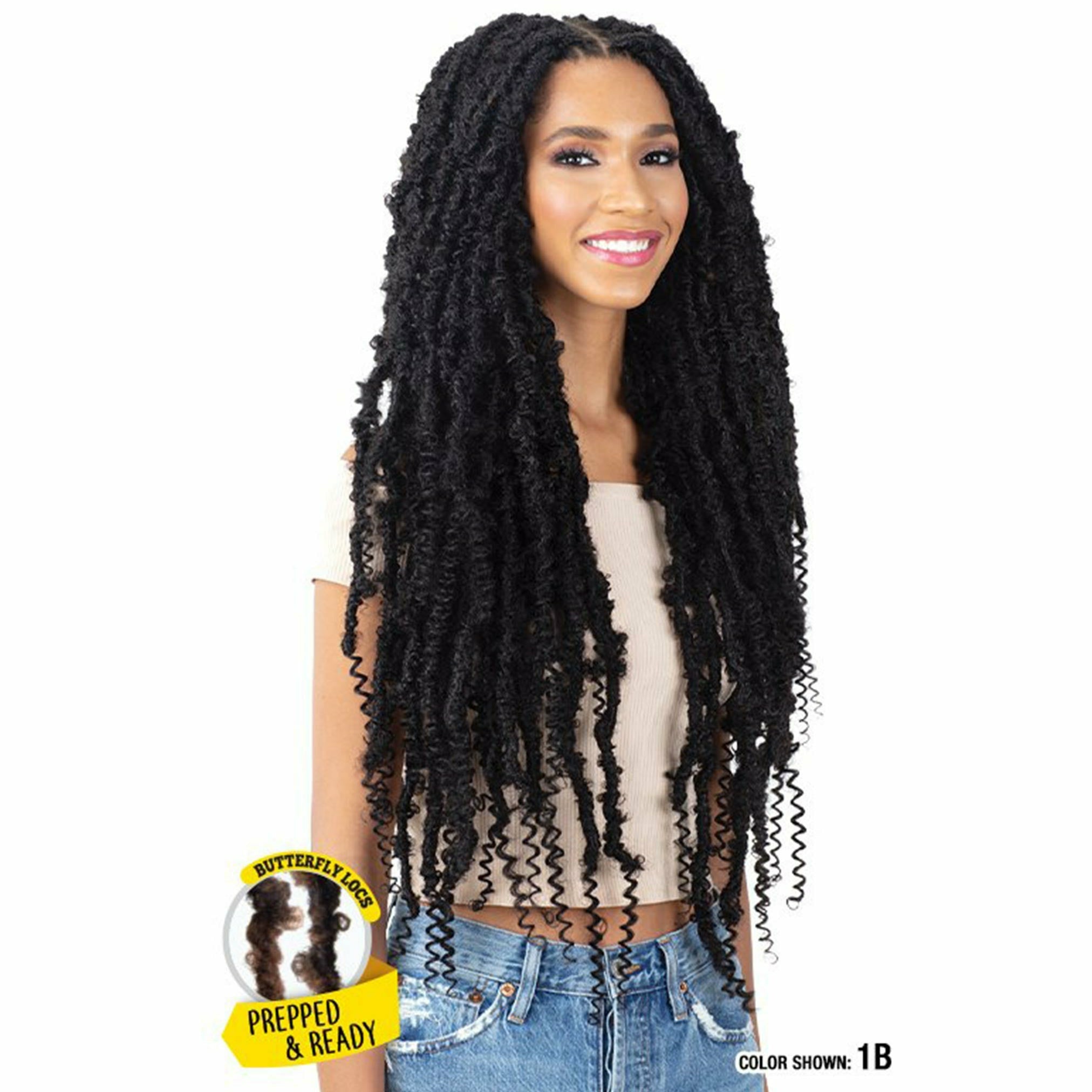 Zury Synthetic Crochet Braids - 2x Butterfly Distressed Locs 10"