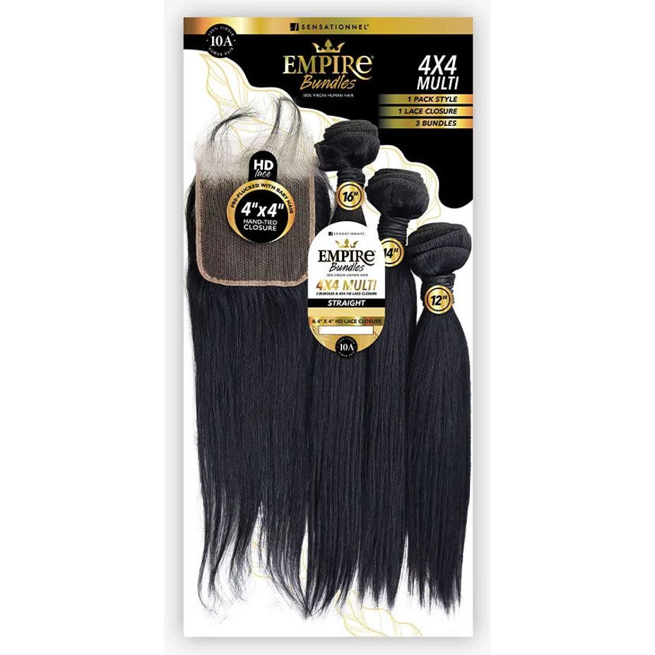 Sensationnel Empire Human Hair 4" X 4" Multi Pack Weave + Closure – Straight